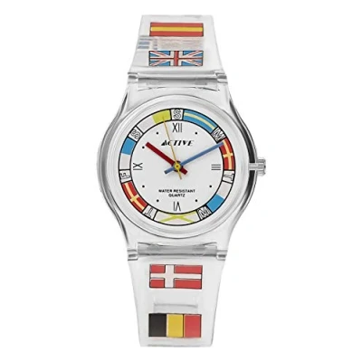 Great design: Analogue Women's watch with a quartz movement Premium quality: By using high-quality materials ✓ Glass: Plastic glass ✓ Case material: Plastic ✓ Bracelet material: Plastic ✓ Waterproof: 3 bars Compact size: ✓ Case diameter: 35 mm, ✓ Height: 11 mm, ✓ Bracelet: Length: 19 cm, Width: 21 mm. Due to this great size, the watch is absolutely for everyday use✓ Weight: 19 Gram Color: The classic Color makes the watch suitable for daily use - Case Color: Without, Dial Color: Multicolour, Bracelet Color: Multicolour Includes: A beautiful, original Active giftbox. Also Includes a manual, service card and a 2-year warranty