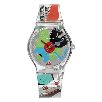 Great design: Analogue Women's watch with a quartz movement Premium quality: By using high-quality materials ✓ Glass: Plastic glass ✓ Case material: Plastic ✓ Bracelet material: Plastic ✓ Waterproof: 3 bars Compact size: ✓ Case diameter: 35 mm, ✓ Height: 11 mm, ✓ Bracelet: Length: 19 cm, Width: 21 mm. Due to this great size, the watch is absolutely for everyday use✓ Weight: 19 Gram Color: The classic Color makes the watch suitable for daily use - Case Color: Without, Dial Color: Multicolour, Bracelet Color: Multicolour Includes: A beautiful, original Active giftbox. Also Includes a manual, service card and a 2-year warranty