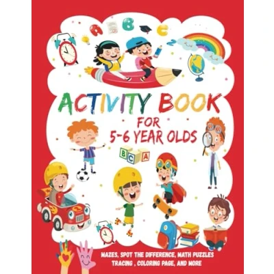 Activity Book For 5 6 Year Olds: Mazes, Spot The Difference, Math Puzzles,Tracing , coloring page, and More