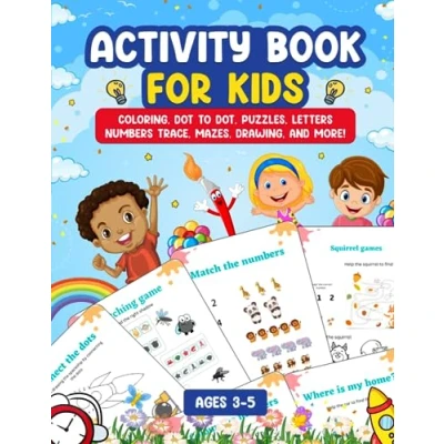 Activity Book For Kids 3 5 Year Olds: Coloring, Dot to Dot, Puzzles, Letters Numbers trace, Mazes, Drawing and More