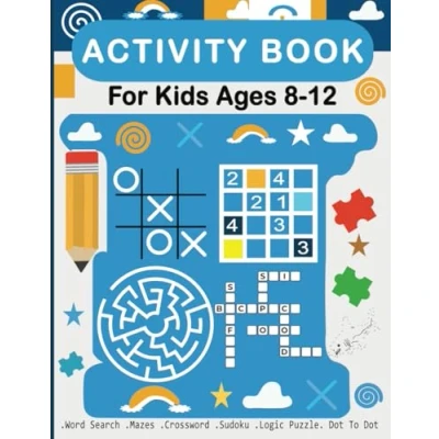 Activity Book for Kids Ages 8 12: Engaging Brain Teasers with Mazes, Dot to Dot, Logic Puzzles, Word Shearches, Crosswords, Sudoku, and More