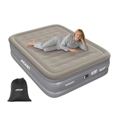 BUILT-IN ELECTRIC PUMP - FAST INFLATION IN 3 MINUTES: The ADABT Wave Beam Air Bed comes equipped with a high-powered built-in electric pump that fully inflates the mattress in just 3 minutes. Easily adjust firmness with the turn of a dial, and deflate quickly for compact storage. Ideal for home use, camping trips, overnight guests, and everyday convenience. FULL-BODY SUPPORT - WAVE BEAM STRUCTURE FOR COMFORTABLE SLEEP: Designed with a 5-beam internal wave structure, the ADABT inflatable mattress offers excellent head-to-toe support and balanced weight distribution. This helps prevent sinking in the middle, providing spine-aligned, even comfort all night long - perfect for back sleepers and restless movers. DURABLE, WATERPROOF & NON-SLIP DESIGN: Crafted from extra-thick, 5-gauge puncture-resistant PVC, the air bed features a soft flocked waterproof top for added comfort and protection. A non-slip bottom keeps the mattress stable on any surface, while reinforced edge support maximises usable space and enhances structural integrity. COMPACT STORAGE & TRAVEL-FRIENDLY: The ADABT blow-up bed deflates into a compact foldable size and fits neatly into the included waterproof carry bag. Lightweight and easy to pack, it's ideal for travel, storage, camping, or last-minute sleepovers. Includes repair patches for quick and easy maintenance. SINGLE & KING SIZES - RAISED HEIGHT FOR EASY ACCESS: Available in Single (W99 x L191 x H46 cm) and King (W152 x L203 x H46 cm), the ADABT air mattress is designed with a raised 46 cm profile for effortless entry and exit. Supports up to 150kg (Single) and 250kg (King) - perfect for solo use or shared sleeping comfort. IMPORTANT NOTE - VINYL STRETCHING IS NORMAL: During the first few uses; the mattress may feel softer due to natural stretching of the vinyl material. Simply re-inflate as needed to maintain your preferred firmness. This is a normal part of the break-in period and will stabilise over time.
