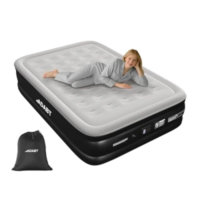 BUILT-IN ELECTRIC PUMP - FAST INFLATION IN 3 MINUTES: The ADABT air bed features a powerful built-in electric pump that fully inflates your air mattress in just 3 minutes. Easily adjust the firmness with a simple dial, and deflate quickly for compact storage. Ideal for guests, camping trips, and everyday use. FULL-BODY SUPPORT - STAY LEVEL & COMFORTABLE: Designed with 40 internal air coils, the ADABT inflatable mattress offers excellent head-to-toe body support and even weight distribution - reducing the common “dip” effect of traditional blow-up beds. Perfect for back support and a restful sleep, wherever you are. DURABLE, WATERPROOF & NON-SLIP DESIGN: Made from extra-thick, 5-gauge puncture-resistant PVC with a flocked waterproof top, this air bed is built to withstand spills, pressure, and everyday use. The non-slip base keeps it stable, while edge support construction increases usable sleeping space. COMPACT STORAGE & TRAVEL-FRIENDLY: When deflated, the ADABT blow up bed folds down into the included waterproof carry bag, making it easy to store or travel with. Comes with repair patches for unexpected punctures - ideal for home, holidays, camping, or sleepovers. SINGLE & KING SIZES - RAISED FOR EASY ACCESS: Choose the perfect fit: Single (W99 x L191 x H46 cm) or King (W152 x L203 x H46 cm). Both sizes feature a raised height for easy access and can support up to 150kg (Single) and 250kg (King). Great for solo comfort or sharing with a partner. IMPORTANT NOTE: INITIAL STRETCHING IS NORMAL: New air mattresses may feel soft after initial use - this is due to natural vinyl stretching. You may need to top up air during the first few nights to maintain firmness. This is completely normal and stabilises with continued use.