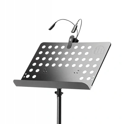 High-quality music stand and compact music stand light with 2 flexible goosenecks 4 bright and efficient LEDs in 2 brightness levels individually switchable Variable adjustable beam of light Long operating time - also ideal as a mobile reading lamp Professional, very stable music stand for use in bands, orchestras or on stage 3 x AAA batteries included