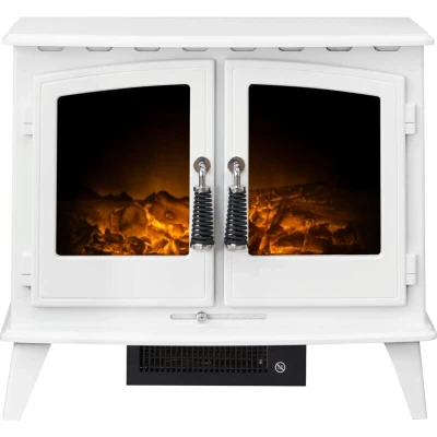 General description The Adam Woodhouse electric stove in Pure White is a stylish and modern addition to any home. It features a realistic LED flame effect and a log fuel bed, creating a cozy atmosphere. This electric stove is designed to complement wooden, marble, or stone fireplaces, enhancing the overall aesthetic of your living space. Compatibility and accessories Compatible with Adam straight or angled stove pipe (sold separately)