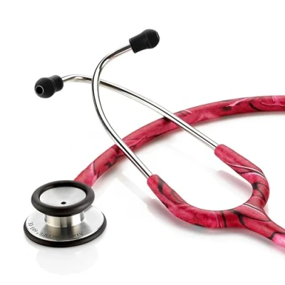 HIGH ACOUSTIC SENSITIVITY: ADC's AFD technology provides enhanced acoustic response; light pressure for low, bell-type frequency; firm pressure for high, diaphragm-type frequency; extralarge bell (1 3/8" (3.5 cm) diameter) for unsurpassed low-frequency response; ultra-sensitive diaphragm (1 3/4" (4.45 cm) diameter) for greater amplification and crisper high-frequency response HIGH QUALITY MATERIALS: Combination diaphragm/bell adult chestpiece precisely machined to exacting tolerances from surgical stainless steel for outstanding performance and rugged durability; tubing is soft and flexible and has been made without phthalates since 2014 HIGH COMFORT: Non-chill bell and diaphragm retaining rims for patient comfort; clinician headset boasts reinforcing yoke molded into the flexible 22" (56 cm) PVC tubing and stainless-steel binaurals fixed at 15 degree angle for greater comfort (tactical, copper, and iridescent models have aluminum binaurals); adsoft Plus silicone eartips with new snap-on connection for the ultimate in wearing comfort and acoustic seal LIMITED EDITION Design, Stand Out in Style: Add a touch of personality and flair to your medical attire with these colorful stethoscopes; includes accessory kit with two pairs of spare Adsoft Plus eartips DIMENSIONS: Weighs 5.8 oz (165 g), overall length 30"/76 cm