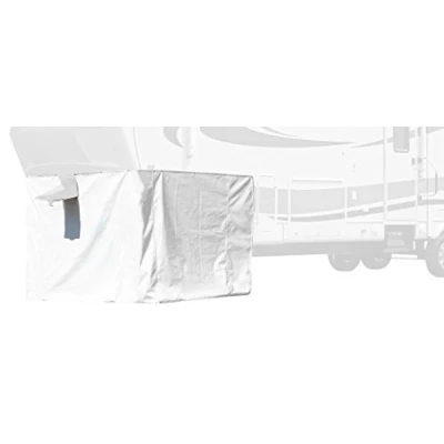 Fifth wheel skirt turns wasted space into a useful storage area under your fifth wheel overhang. Great for outdoor furniture,bikes and other gear Heavy duty zippers allow access on all three sides For correct fit, measure height and length around front of overhang Fasteners and tent spikes included ,Measures 64 inches high x 296 inches long Removable, velcro attached cut-out is provided for a protruding tongue hitch , Installation with snap screws required