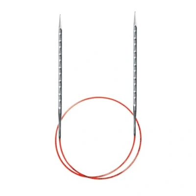 Addi Novel ergonomic square tip circular knitting needles with red cord (EU version). Item is authentic Addi needle, designed and manufactured in Germany for the UK/European markets with red cords. DESIGN: addi Novel have special ergonomics and a unique 3D touch giving an innovative sensory knitting experience and making them suitable for knitters with arthritis. The tips are square in shape with rounded edges and a textured surface. Addi innovative design is why addi needles are the true choice of professional knitters worldwide. WHITE-BRONZE FINISH: Original Nickel-plated finish has been replaced by White-Bronze finish which offers a brighter appearance and incomparable zip but without some of the skin sensitivity concerns associated with nickel plating; White-Bronze is extremely resistant to tarnish and corrosion making addi circular needles even better than before PRODUCT AUTHENTICITY: Item is designed and manufactured in Germany by Addi - GUSTAV SELTER GmbH & Co. KG WARRANTY: Item is covered by GUSTAV SELTER GmbH & Co. KG 2 year warranty from any defect, deficiency or imperfection