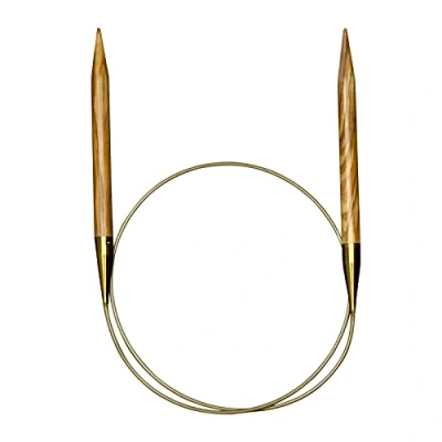 addi Olive Wood Circular Knitting Needles 150cm length. Beautifully made from sustainably sourced Olive Wood, each needle is finished with a plant-based oil to protect its unique look. Buy these for smooth, quiet and comfortable knitting. Warm to the touch - great for arthritic hands. CONSTRUCTION: addi Olive Wood Needles are created from non-fruit bearing olive trees, each Addi Olive Wood needle is finished with a natural waxes to protect its unique look; needles are quiet and comfortable to work with, as all tips and grips attain body temperature quickly making them a great choice for arthritic hands; includes the ultra-pliable Gold cords and snag-free joins PRODUCT AUTHENTICITY: Item is designed and manufactured in Germany by Addi - GUSTAV SELTER GmbH & Co. KG WARRANTY: Item is covered by GUSTAV SELTER GmbH & Co. KG 2 year warranty from any defect, deficiency or imperfection