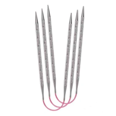 This set of three addi CraSyTrio Trio needles with pink bendable cord is a knitter's dream. The elegant, spiral-shaped needle structure and the shiny surface, enhance the needles - not only do they look good, they are also gentle on the hands. Each 'pair' comprise one basic tip and one lace tip - perfect for knitting socks, hats, sleeves, roll collars and baby clothes. USE: Knitting in the round. When knitting in the round stithes are distributed across two needles and simply knitted with the third needle - so only two needles are needed per round! MATERIAL:the Tips are made from metal with snag free joins to the flexible cord. MATERIAL:the Tips are made from metal with snag free joins to the flexible cord. SiZES: Available in sizes 2mm (US 0) - 5mm (US 8). PRODUCT AUTHENTICITY: Item is designed and manufactured in Germany by Addi - GUSTAV SELTER GmbH & Co. KG