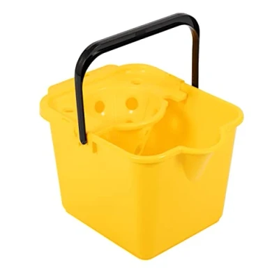 A nonsense 14 litre cleaning mop bucket pail and wringer by ADDIS Available in all commercial colours With a detachable wringer for use with most mops Features base hand pouring grip, pouring spout & inner measuring gauge Made in the UK of highly durable plastic for long life Addis - Made for life