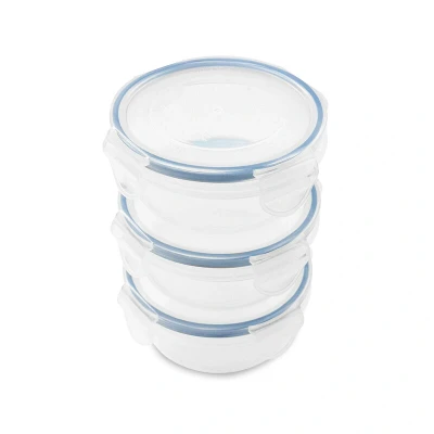 Addis Clip Tight Food Storage Containers 300 ml Round Pack Of 3 Airtight Bpa Free Easy Locking Lid Clips, Clear Transparent