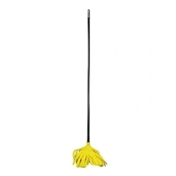 Cloth mop with detachable mop head. Sturdy construction. Soft cloth strands to reach nooks and crannies. Absorbent material to dry wet floors quickly. Easy twist-on connector for affixing mop head to handle. Colour: Yellow.