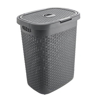 Addis Faux Rattan 50 Litre Family Laundry Clothes Washing Hamper Bin with Lid, Charcoal Grey