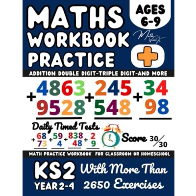 Addition Maths Book for 6 9 Year Olds / 2 Year3 4, KS1 KS2 Maths, Digit 3 Digit, and More, Multi Math Drills, Grades 1