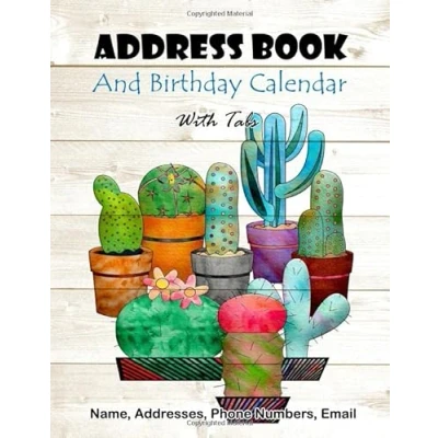 Address Book and Birthday Calendar with Tabs: Contact Organizer Notes Anniversaries Birthdays : Large Print for Cactus Succulent Lovers