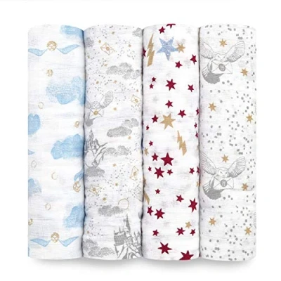 aden + anais 100% cotton Muslin Swaddle & Receiving Blankets for Baby Girls Boys, 120x120cm, Ideal Newborn Infant Swaddling Wrap Set, Perfect Shower Gifts, 4 Pack, Harry Potter™ iconic