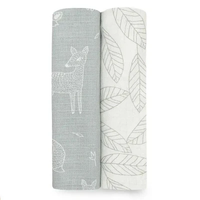 Aden + anais Silky Soft Swaddle Baby Blanket, 100% Cotton Bamboo Muslin, Large 44 X inch, 2 Pack, Woodsy