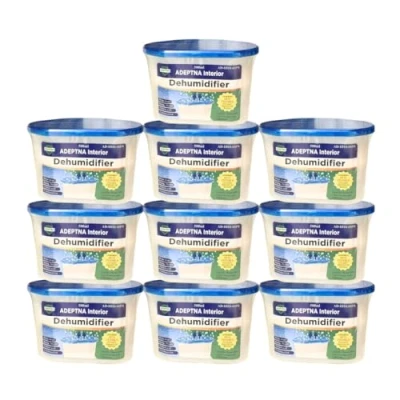 ADEPTNA 500ML INTERIOR DEHUMIDIFIERS MOULD MILDEW REMOVER ABSORBS MOISTURE HELPS STOP DAMP AND CONDENSATION IDEAL FOR HOME KITCHEN BATHROOM OFFICE CARAVAN GARAGE (PACK OF 10)