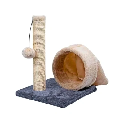 STURDY STRUCTURE – Our kitten cat Scratching post is the post you want! It is built from MDF board and natural sisal design. Additionally, this also helps to keep cat's claws healthy, whilst you keep the furniture and the rugs unharmed. HAPPY AND HEALTHY KITTEN – Our cat kitten Scratching Post with tunnel is a vital tool in helping to keep your cat happy and healthy. STRESS RELIEF CAT POST – Scratching is an important activity for your cat, not only does it strengthen their claws but aids in stress relief. By encouraging activity and exercise your cat will love to stretch, scratch and play. PLEASURABLE ACTIVITY FOR - This post inspires your little friend to exercise. The plush tunnel and ball are great for swatting, pouncing and playing! The hanging ball on the post increases the stimulation and brain activity. Keeps your pet’s claws healthy and well-groomed as sisal scratching post is fantastic for scratching. DIMENSION – Cat post size 25x25x33cm approx. helps keep claws trim & healthy. Aids in stress relief & keeps your kitten entertained for hours. Reduce wear & tear on furniture