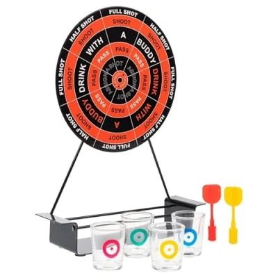 𝐅𝐔𝐍 𝐃𝐑𝐈𝐍𝐊𝐈𝐍𝐆 𝐃𝐀𝐑𝐓 𝐆𝐀𝐌𝐄 – This darts-based drinking game combines classic dartboard fun with hilarious drinking challenges, making it the perfect adult party game for birthdays, game nights, or weekend gatherings. 𝐌𝐀𝐆𝐍𝐄𝐓𝐈𝐂 𝐃𝐀𝐑𝐓𝐁𝐎𝐀𝐑𝐃 𝐀𝐍𝐃 𝟒 𝐒𝐀𝐅𝐄 𝐃𝐀𝐑𝐓𝐒 – Features a compact magnetic dartboard and three magnetic darts that stick securely to the board without sharp tips, ensuring safe and fun play for everyone involved. 𝐒𝐄𝐓 𝐅𝐎𝐑 𝟐 𝐓𝐎 𝟒 𝐏𝐋𝐀𝐘𝐄𝐑𝐒 – The game includes four color-coded shot glasses so each player has their own glass. Ideal for playing in pairs or groups of up to four, making it perfect for double dates, house parties, or dorm rooms. 𝐆𝐑𝐄𝐀𝐓 𝐅𝐎𝐑 𝐏𝐀𝐑𝐓𝐈𝐄𝐒 𝐀𝐍𝐃 𝐄𝐕𝐄𝐍𝐓𝐒 – A must-have for any adult event, including hen and stag parties, bachelor or bachelorette nights, college events, or casual get-togethers. Easy to set up and guaranteed to entertain. 𝐂𝐎𝐌𝐏𝐀𝐂𝐓 𝐀𝐍𝐃 𝐆𝐈𝐅𝐓𝐀𝐁𝐋𝐄 – The mini dartboard measures 17 cm in diameter and stands 27.5 cm tall with the included base. A fun and unique gift idea for men, women, couples, roommates, or anyone who enjoys party games with a twist., Manufacturer: ALAYASH LIMITED