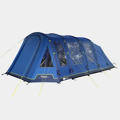 Complete with airflow ventilation, the air in the tent stays fresh and combines with the natural light from the clear window panels to give you a homely, liveable space. The bedrooms are darkened with Nightfall technology to prevent rude awakenings from the early summer sun and come with a removable divider for adaptable space. Whether you're getting away for a weekend in the hills, setting up camp near a coastal town or simply having some downtime in the great outdoors, the Adhara 700XL Tent is a perfect tent for large families and groups of up to seven people. Looking to extend your living space or make room for extra kit? The Berghaus Adhara Porch is fully compatible with this tent. You can also protect your tent and make pitching easier with the Adhara 700XL Footprint, and bring add some home comfort underfoot with an Adhara 700XL Carpet (each sold separately). About Berghaus A symbol of British outdoor adventure, Berghaus was founded in the North-East of England in 1966 and is renowned for creating pioneering outdoor gear for campers, hikers and climbers. Its range of air tents revolutionised the camping world and the brand continues to innovate by harnessing new technologies and materials. The brand lives by the philosophy that the best of life is lived outdoors and that absolutely nothing should stop you from being there. Key Features Nightfall darkened bedroom with divider for peaceful sleeping with no rude awakenings (divider can be removed to create one bedroom space) Includes additional Nightfall Bedroom which can be added to tent to create a sleeping space for 2 extra guests Spacious living area with enough headroom for everyone under 6' 7” ft High performance air tubes for even simpler setup Airflow ventilation system for improved breathability and a fresh, natural living environment Fully sealed groundsheet for easier pitching and enhanced protection from the ground Canopy side door for extra shade/dry storage Pump and carry bag included Specifications Berth: 7 people Hydrostatic Head (waterproof): 6000mm EN5912 flame retardant materials Flysheet: 68D 185T Polyester Embossed, PU 6000mm Inner: 190T Breathable Polyester Groundsheet: 185T Polyester, PU 1000mm Air Tubes: 4x φ10mm 585cm, 1x φ10mm 525cm Carrybag included Pitch time: 30 mins Pitched dimensions: 680cm x 320cm x 205cm (LxWxH) Standing height: 205 cm / 6' 7” ft Bedroom dimensions: 210 x 320cm Living space dimensions: 210 x 320cm Porch dimensions: 210 x 320cm (please note porch area isn't a perfect rectangle due to the tapered shape of tent) Pack size: 80 x 50 x 40cm Weight: 27.2kg