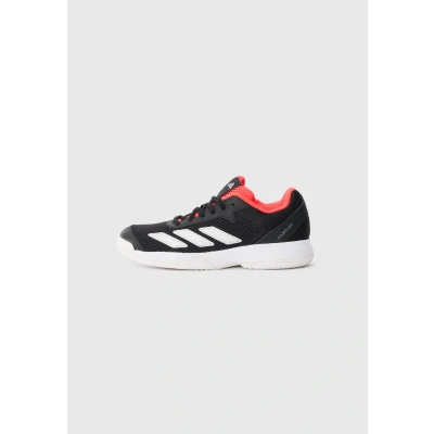 Tennis speedsters need lightweight, comfortable footwear that keeps up with their game. These kids' Courtflash shoes from adidas have a mesh upper for cool play and a durable Adiwear outsole that easily stands up to quick cuts and fast footwork. Whether your young athlete is learning the basics or already acing serves, these shoes will deliver the allcourt performance they need. This product features at least 20% recycled materials. By reusing materials that have already been created, we help to reduce waste and our reliance on finite resources and reduce the footprint of the products we make. Sale | Upper material: imitation leather/ textile/Lining: textile/Sole: synthetics/Insole: textile | Sale order at Zalando UK! Size: 10.5K. Color: White/silver/coloured/core black. Pattern: plain. Age group: Kids.
