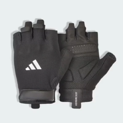 RunningXpertAdidas Essential Training Gloves are Robust Training Gloves for Strength Training, Machines, and Functional Exercises. The Padded palm Reduces Pressure from bars and Handles, Providing Better Comfort and grip on heavy sets. A Breathable top helps to Dissipate heat, while the Half-length Finger Construction Offers good feel and Control. Adjustable Closure at the wrist Ensures the Gloves fit Stably Without Tightening, and Practical pull tabs make them easy to put on and take off – even when hands are Sweaty. A Simple, Durable Choice for your daily Training.