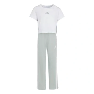adidas Girl's ESSENTIALS T SHIRT SET, white/Wonder Sage, 9 10 Years