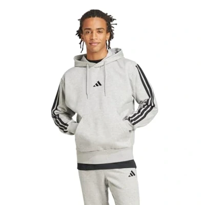 adidas Men's ESSENTIAL THREE STRIPES FLEECE HOODIE, medium grey heather/black, S