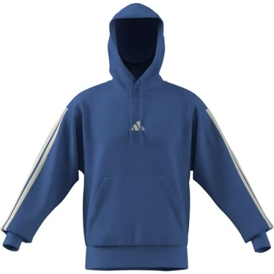 adidas Men's ESSENTIAL THREE STRIPES FLEECE HOODIE, ray blue/off white, XXL
