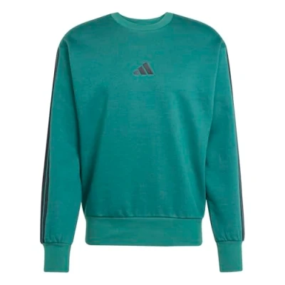 adidas Men's ESSENTIAL THREE STRIPES FLEECE SWEATSHIRT, collegiate green/black, L