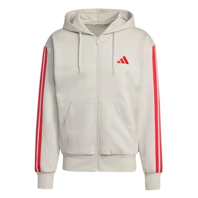 adidas Men's ESSENTIAL THREE STRIPES FLEECE ZIPPER HOODIE, wonder alumina/pure ruby, S
