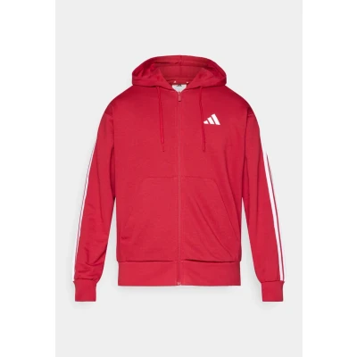 adidas Men's ESSENTIAL THREE STRIPES FRENCH TERRY FULLZIP HOODIE, active maroon/white, S