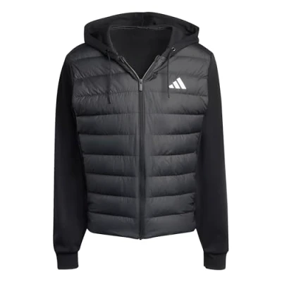 adidas Men's Essentials CLIMAWARM Hybrid Down Hooded Jacket, black, L