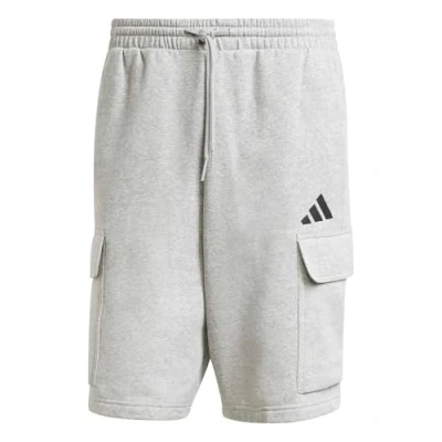 adidas Men's Essentials FEELCOZY Fleece Cargo Short, Medium Grey Heather/Black, M