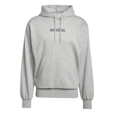 adidas Men's ESSENTIALS LINEAR FLEECE HOODIE, medium grey heather/black, M