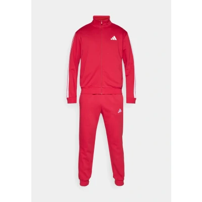 adidas Men's SPORTSWEAR BASIC 3 STRIPES FLEECE TRACKSUIT, active maroon/white, L