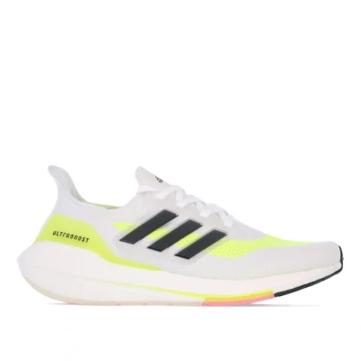 Mens adidas Ultraboost 21 Running Shoes in white black. – adidas Primeknit textile upper. – Lace closure. – Sock like fit. – Boost midsole. – Supportive heel counter. – Stretchweb outsole with Continental™ Rubber. – Textile upper and lining Stretchweb sole. – Ref.: FY0377