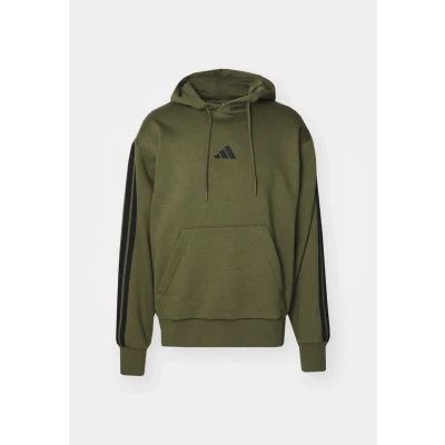 adidas Men's ESSENTIAL THREE STRIPES FLEECE HOODIE, olive strata/black, M