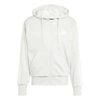 adidas Men's ESSENTIAL THREE STRIPES FLEECE ZIPPER HOODIE, wonder alumina/white, XL