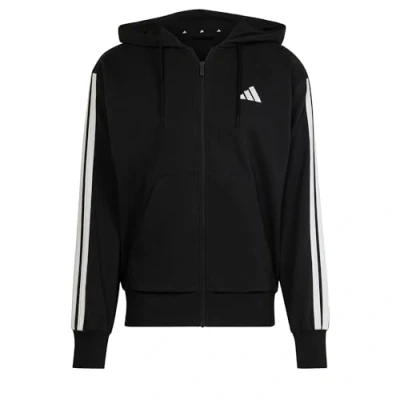 adidas Men's ESSENTIAL THREE STRIPES FRENCH TERRY FULLZIP HOODIE, Black/White, XXL