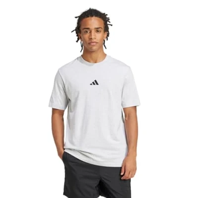 adidas Men's Essentials Small Logo Single Jersey TEE, Light Grey Heather/Black, XS