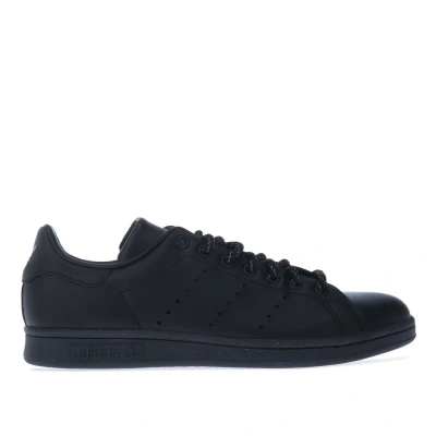 Mens adidas Originals Stan Smith Trainers in black.- Synthetic upper.- Lace fastening. - Perforated 3-Stripes.- Branded insole.- Contrast heel patch with debossed Trefoil branding.- Round toe.- Flat rubber sole.- Synthetic upper Textile lining Synthetic sole.- Ref.: GY4980