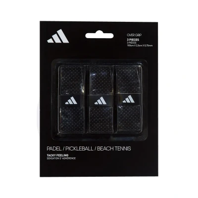 The adidas padel overgrip is perfect for those who want maximum comfort and surgical precision in their game. It is made to provide a soft, cushioned feel and extra tackiness. This 0.75mm (0.03') thick overgrip combines great traction, increased durability and enhanced moisture absorption and comes in a pack of 3.