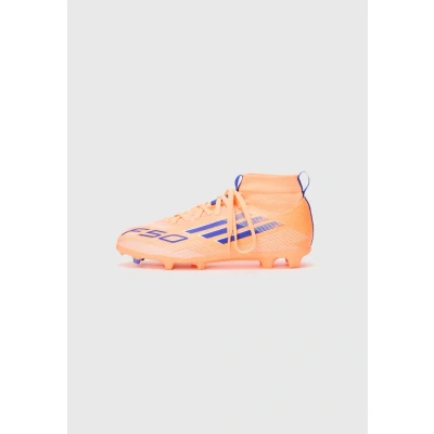 adidas Performance F50 League Football boots firm ground beam orange/lucid blue/white Sale at Zalando UK | Upper material: synthetics/textile/Lining: textile/Sole: synthetics/Insole: textile | Sale order at Zalando UK! Size: 13.5K. Color: Beam orange/lucid blue/white. Pattern: print. Age group: Kids.