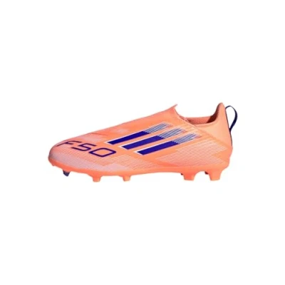 Help your youngster play with confidence in the adidas F50 Juniors League Laceless Multi-Ground Boots Featuring an eye-catching Sprintgrid print for standout style the laceless design offers a clean striking surface and secure fit Built for multi-ground versatility theyâ€re perfect for training sessions weekend matches and developing skills on a variety of pitches Product Highlights:- adidas branding for a striking look - Outsole designed for optimal traction on firm ground