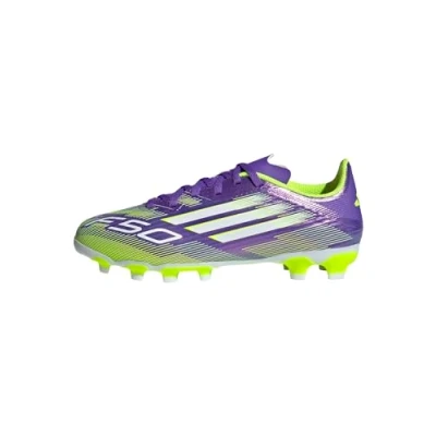 adidas Performance F50 League Unisex Football boots firm ground for kids, Size: 12.5K, Purple rush/white/lucid lemon shoes