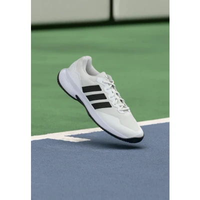 adidas Performance Gamecourt 2 M Multicourt tennis shoes footwear white/core black/silvercoloured metallic Sale at Zalando UK | Upper material: textile/synthetics/Lining: textile/Sole: abrasionproof rubber/Insole: textile | Sale order at Zalando UK! Size: 8. Color: Footwear white/core black/silver/coloured metallic. Pattern: plain.