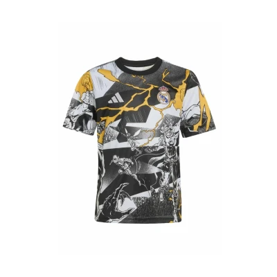 adidas Performance REAL Madrid Avengers 25/26 Prematch Sports Tshirt white black bold goldcoloured for kids, Size: 11 12y